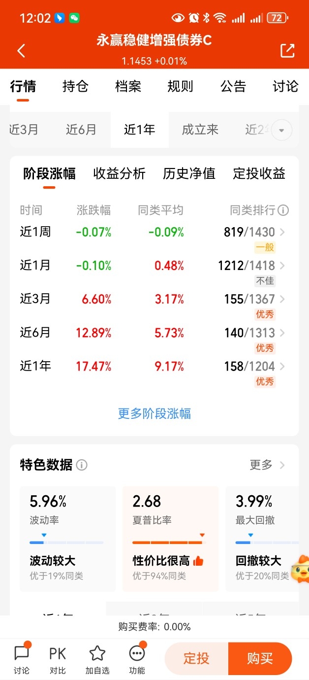 选对基真的太重要了,$永赢稳健增强债券C$昨天收1个蛋,近五天有四天上涨。产品以