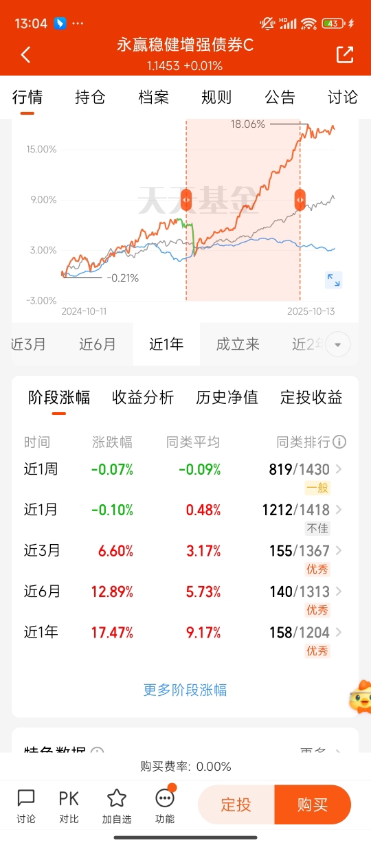 求稳怕波动还要增厚业绩看看固收债基。五天四涨的$永赢稳健增强债券C$有股有债组合