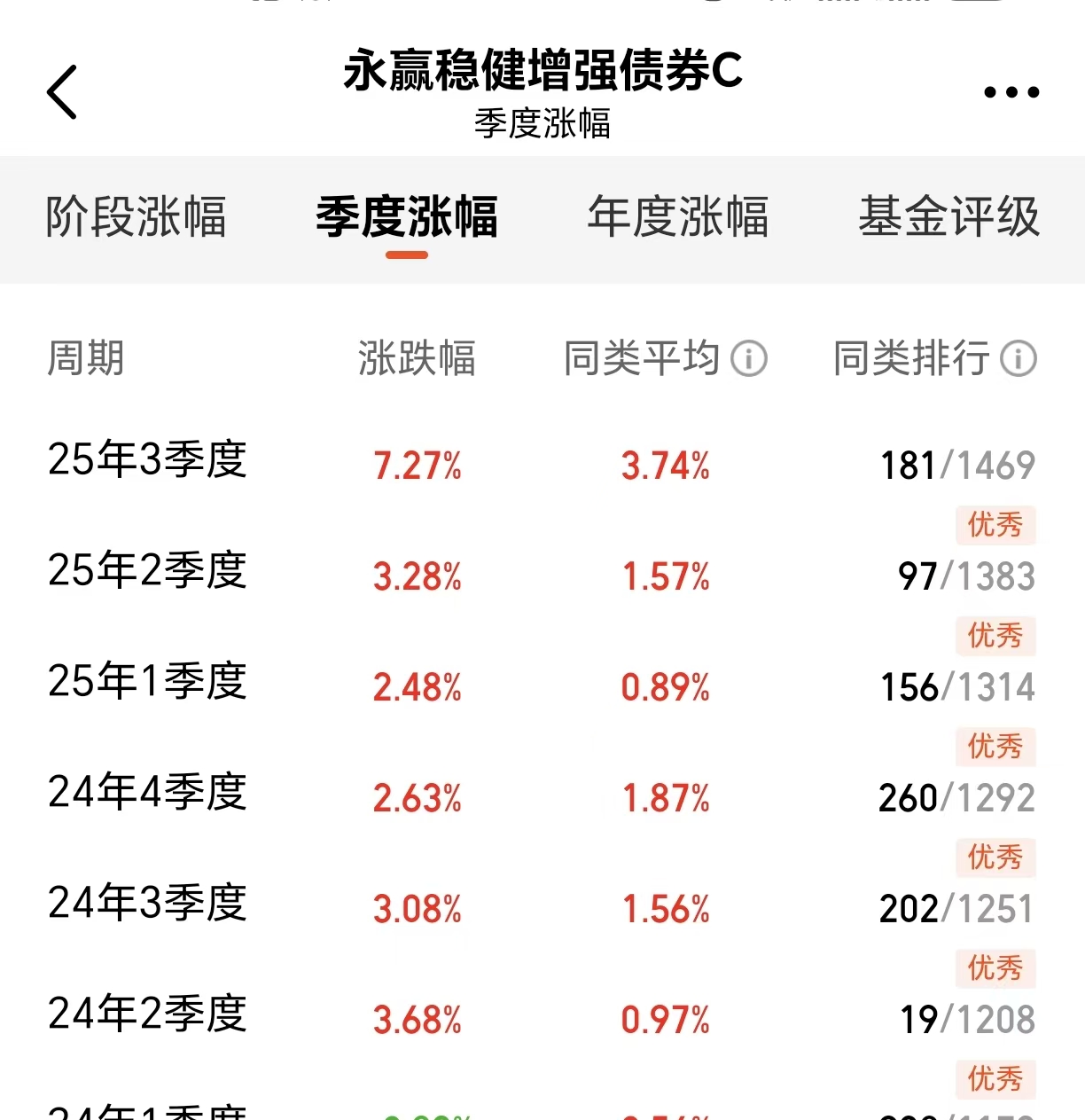 当前市场环境下,配置"固收+"产品正成为平衡风险与收益的明智选择。$永赢稳健增强债券C$ (014089)作为绩优固收+代表,近期表现稳健,已迈入持续"收蛋"区间,目前已经连续6个季度正收益收益了,值得投资者重点关注。
