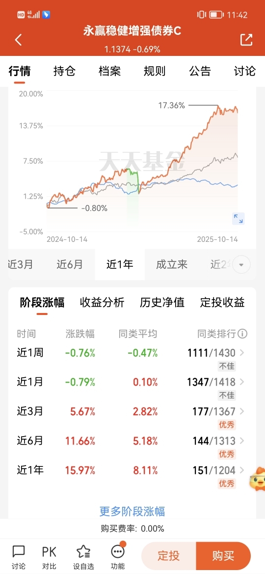 作为绩优固收+代表的$永赢稳健增强债券C$ 近三个月收蛋567个,近六个月收蛋1166个,近一年更是15.97%的涨幅,收蛋能力很强的。当前市场波动加剧,低风险资产配置需求凸显,固收+产品凭借攻守兼备特性成为资产配置优选。趁回调低吸入,慢慢积累筹码也不错。#全球市场深夜暴跌!纳指重挫超3%#