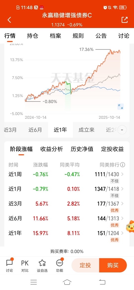 $永赢稳健增强债券C$ 固收加,稳健布局也是不错,能涨抗跌的,近三个月收567个蛋,近半年收1166个蛋,近一年收1597个蛋,永赢稳健增强在严控风险的基础上持续辅以权益资产增厚收益,相比同类超额收益明显,其采用债券稳健资产打底,再用权益资产增厚收益,相比其他混合债基其弹性更强。拿久一点更有性价比。#10月看好哪些投资赛道?等你来分享#