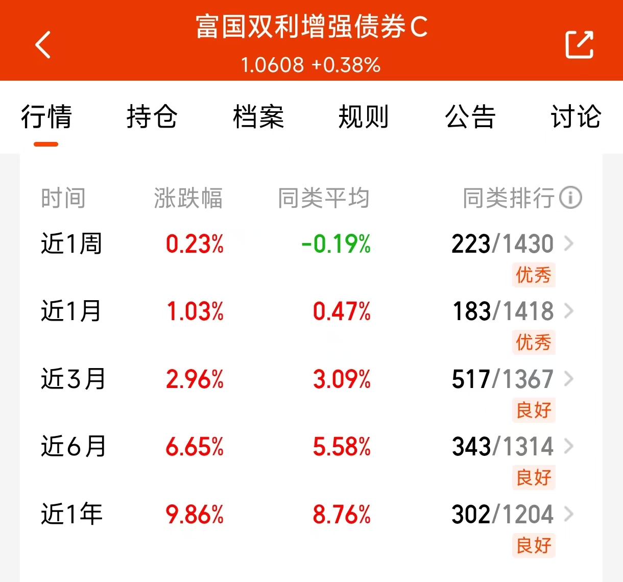 今天买了一个布局有色。主要现在有色不错,但是真要我做又不敢,买个这种$富国双利增强债券C$(012747)权益部分主要看有色和周期的看看。说白了我就是图这基金2成的有色仓位,然后8成债,不敢上有色仓位又看好,就买个试试水。#指数操盘手集结令#