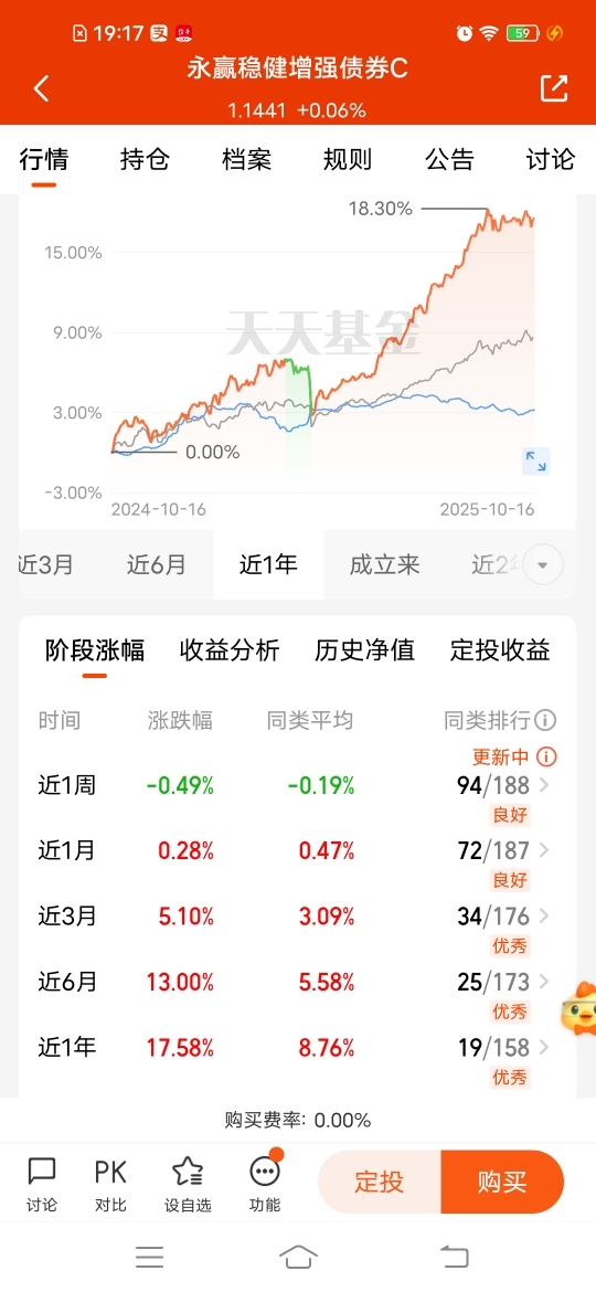 $永赢稳健增强债券C$ 今晚更新收6个蛋,近三个月收510个蛋,近半年收1300个蛋,近一年收1758个蛋,各个阶段业绩超额,中长期更值得期待,只配置权益风险大,当下均衡配置更适宜。较高仓位债券打底,再配置一定股票来增强收益,攻守兼备,也比较适合震荡市场布局。#3900点得而复失!A股风格要改了?#