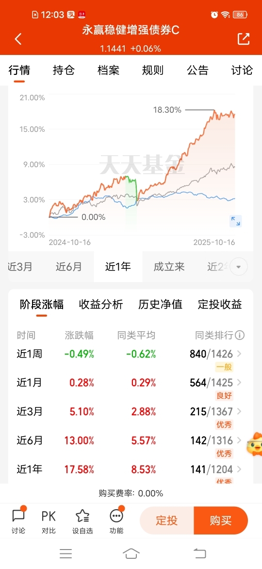 $永赢稳健增强债券C$挺适合稳健布局,固收+俩不误,昨天收6个蛋,近半年收130