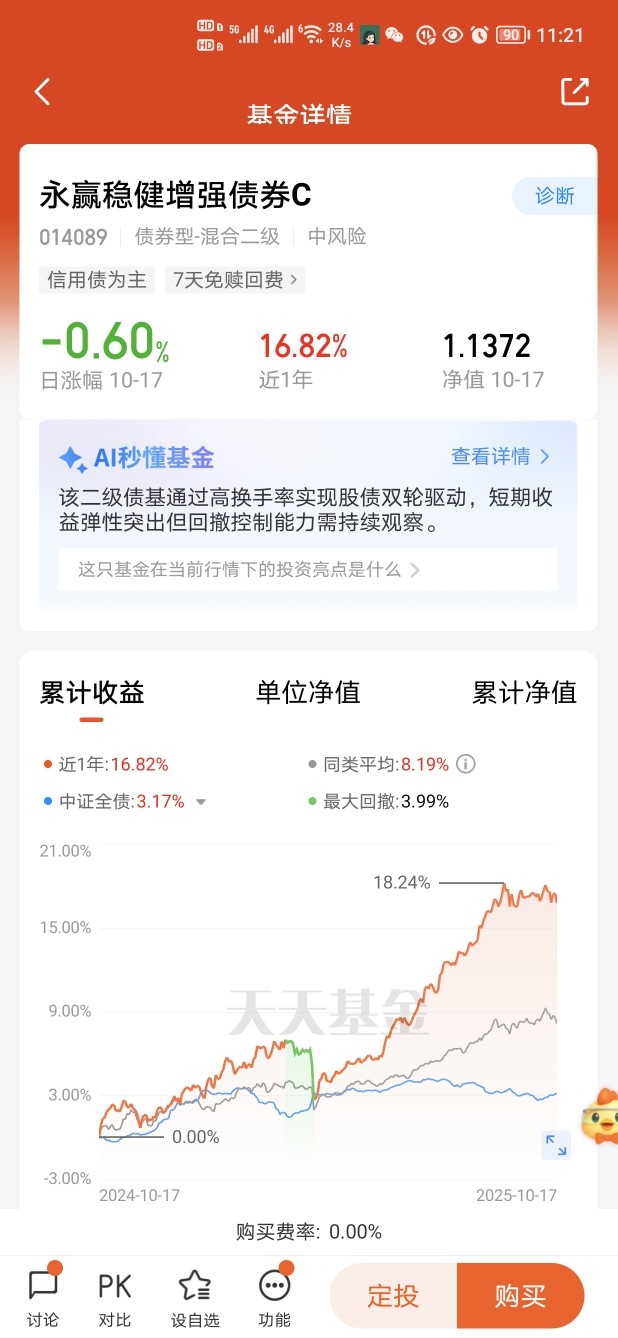 当前波动的市场行情之下,还是选择这种攻守兼备的产品会更好,$永赢稳健增强债券C$ 这款产品采用“债券打底+权益增强”的黄金配比,底层精选高等级信用债筑牢安全垫,搭配利率债优化久期管理,确保基础收益稳定;权益部分则聚焦低估值、高股息标的,并灵活配置可转债增强弹性,让组合在市场波动中既能“守得住”又能“攻得出”。长期业绩表现更加亮眼。最近一年,有1682颗蛋,还是很优秀的。#亚太股市杀跌 市场开启避险模式?#