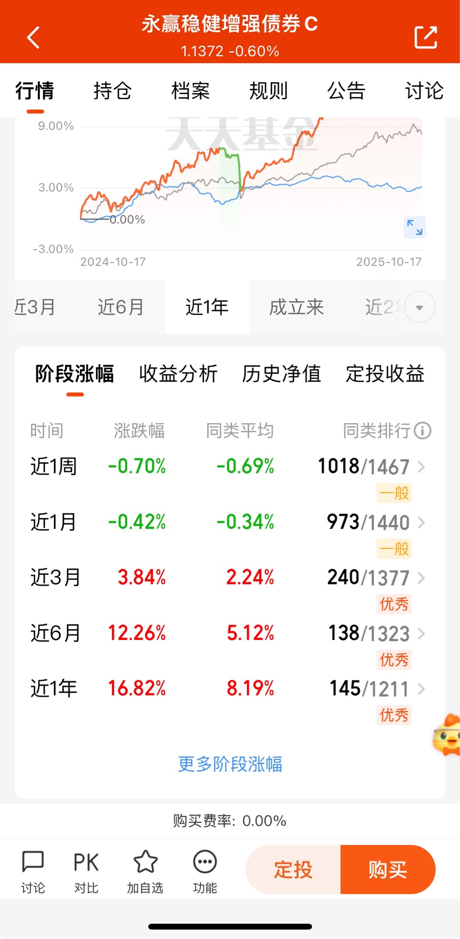 $永赢稳健增强债券C$今天跟着加一波哈,近3个月收384个蛋,近6个月收1226