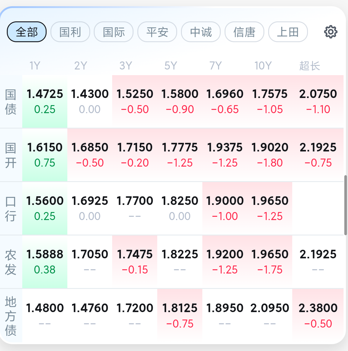 今日尾盘债市偏强震荡,市场或定价降息预期,消息称多家中小银行下调存款利率,部分产品降幅达80个基点。国债期货集体上扬,银行间主要利率债收益率多数下行,长端表现较好,信用债盘面也不错,今天也算的股债双收!