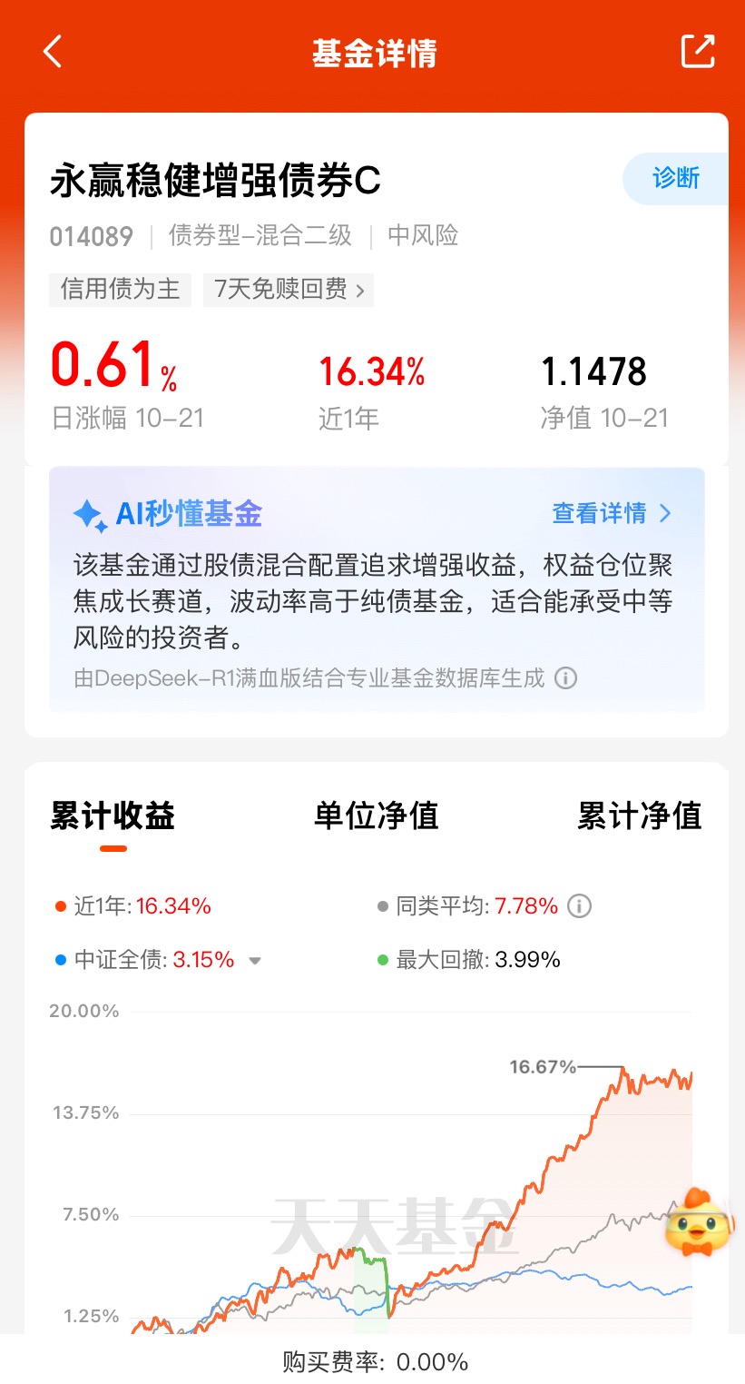 #CPO、PCB大反攻!行情空间有多大?# 通过“固收+”策略,大部分资产投资债券提供稳定收益,小部分配置股票、可转债等权益资产增强收益,进可攻退可守;$永赢稳健增强债券C$ 昨天收61个大蛋,近三个月收470个蛋,近六个月收1303个蛋,近1年收1634个蛋,各阶段的业绩在同类中排名靠前;固收类产品通过股债动态配置,在权益市场波动时仍能保持相对稳定的净值,最大回撤控制较好,持有体验优于纯债基金,受到更多关注。