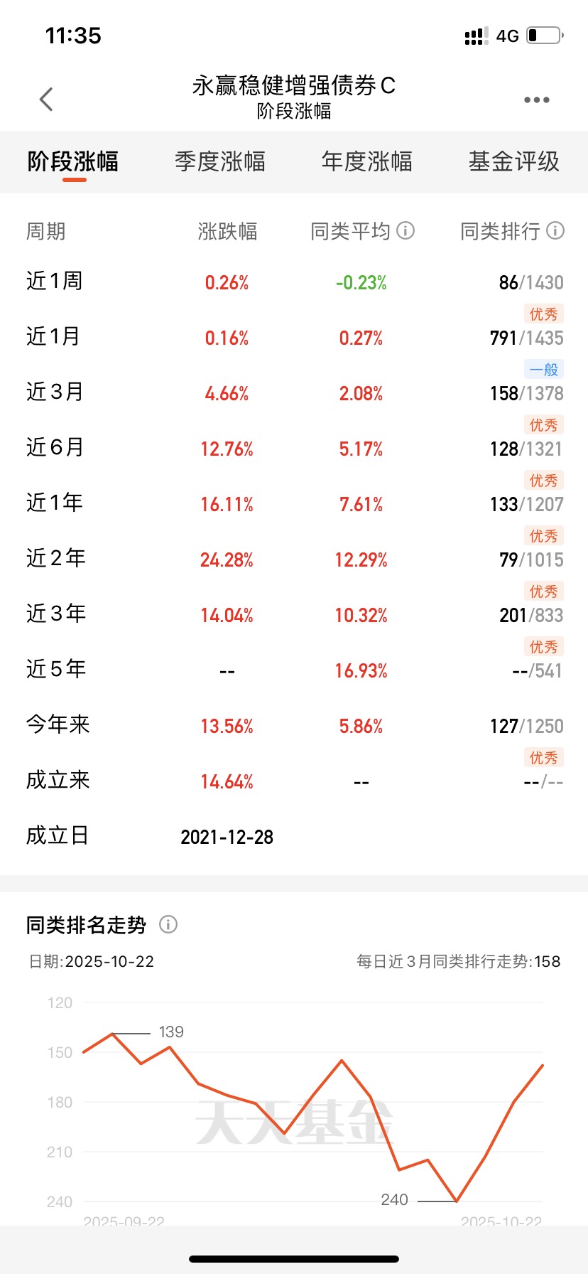 一直都挺看好$永赢稳健增强债券C$ 这只固收加基金的,我们先来看看他的业绩表现,近三个月466个蛋,近半年1276个蛋,近一年1611个蛋,业绩表现优秀亮眼,没有股市的大起大落,还有债市的稳健向上,这里还是持有7天免赎回费一个,可以说持有下来收益都不会差,趁着调整我也关注起来了!#黄金创12年来最大单日跌幅!什么信号#