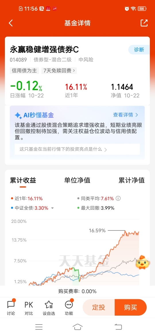 $永赢稳健增强债券C$ 挺适合震荡市场布局,固收加俩不误,近一个月收16个蛋,近半年收1276个蛋,近一年收1611个蛋,稳定下来,收大蛋能力强,中长期更有优势,只配置权益风险大,当下均衡配置更适宜。较高仓位债券打底,再配置一定股票来增强收益,进退皆宜,跟上。#沪指盘中突破3900点!什么信号?#