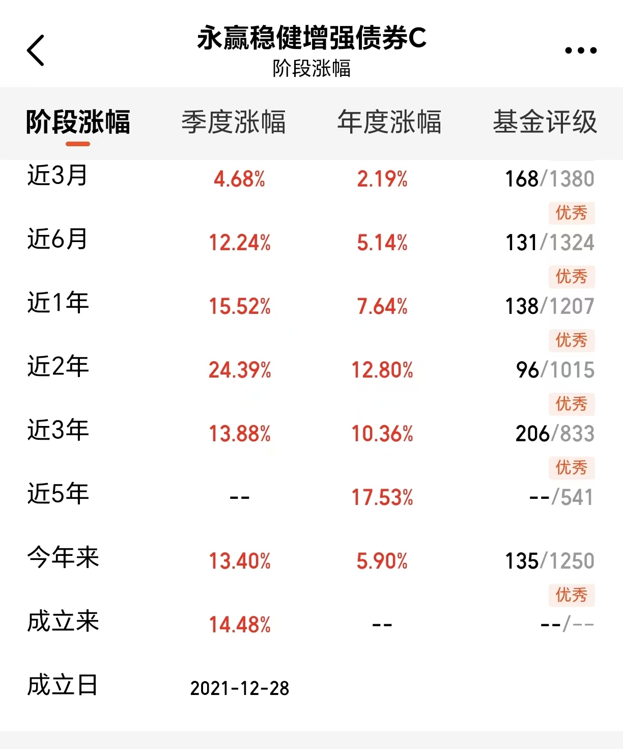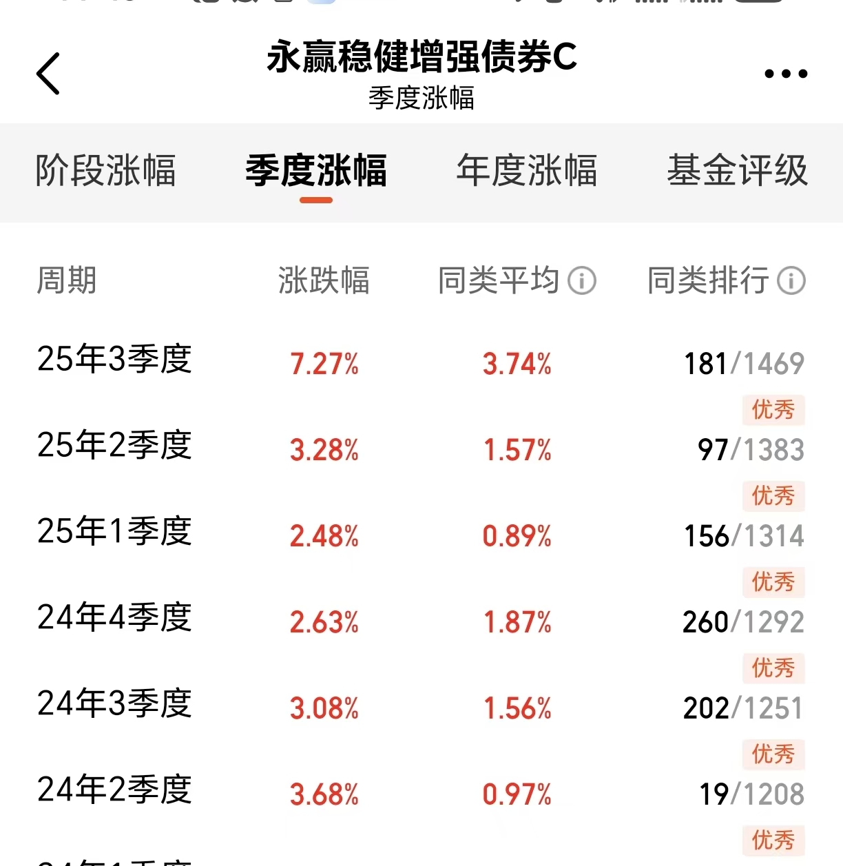 低利率环境下,固收+产品因其策略的灵活性与风险控制优势,逐渐成为资产配置的重要工具。而$永赢稳健增强债券C$ (014089)这款绩优固收+更是值得关注,最近的6个季度都是正收益,值得重点锁定。
