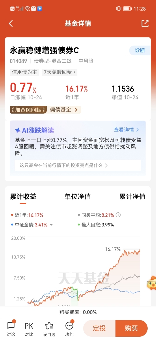 $永赢稳健增强债券C$ 靠债券持仓稳住基本盘,又凭权益和转债布局抓住弹性机会。上周五收77个大蛋,近一周收144个蛋,近一年更是收蛋1617个。在低利率环境下,固收+从纯债转向含权资产增厚收益的趋势会更显著。固收+就选永赢稳健增强,后市继续保持期待!#党的四中全会审议通过“十五五”规划建议#