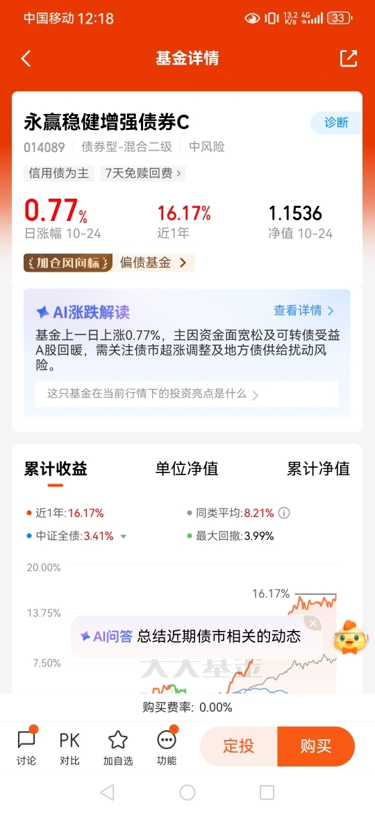 #CPO、PCB大反攻!行情空间有多大?# 在债券收益率下行背景下,混债基金作为"固收+"产品,可满足投资者对收益和风险的平衡需求,规模或稳步增长。永赢稳健增强C近1年收1617个蛋,各阶段的收蛋能力都不错;通过债券打底控制风险,叠加股票或可转债增强收益,适合风险偏好较低但追求稳健增值的投资者。