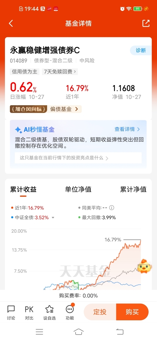 $永赢稳健增强债券C$挺适合稳健布局,今晚更新收62个蛋,近一个月收196个蛋,