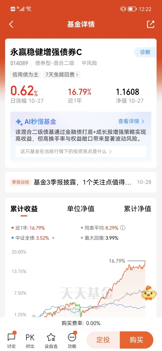 $永赢稳健增强债券C$ 采用债券打底,权益增强策略,昨天又是62个大蛋,近三个月收613个蛋,近一年收蛋1679个,收蛋能力很强,已连续6个季度斩获正收益。在利率维持低位、股市结构性机会频现的背景下,“固收+”产品通过多资产配置,能较好满足追求稳健增值的投资需求。我跟了,加油冲!#CPO、PCB大反攻!行情空间有多大?#