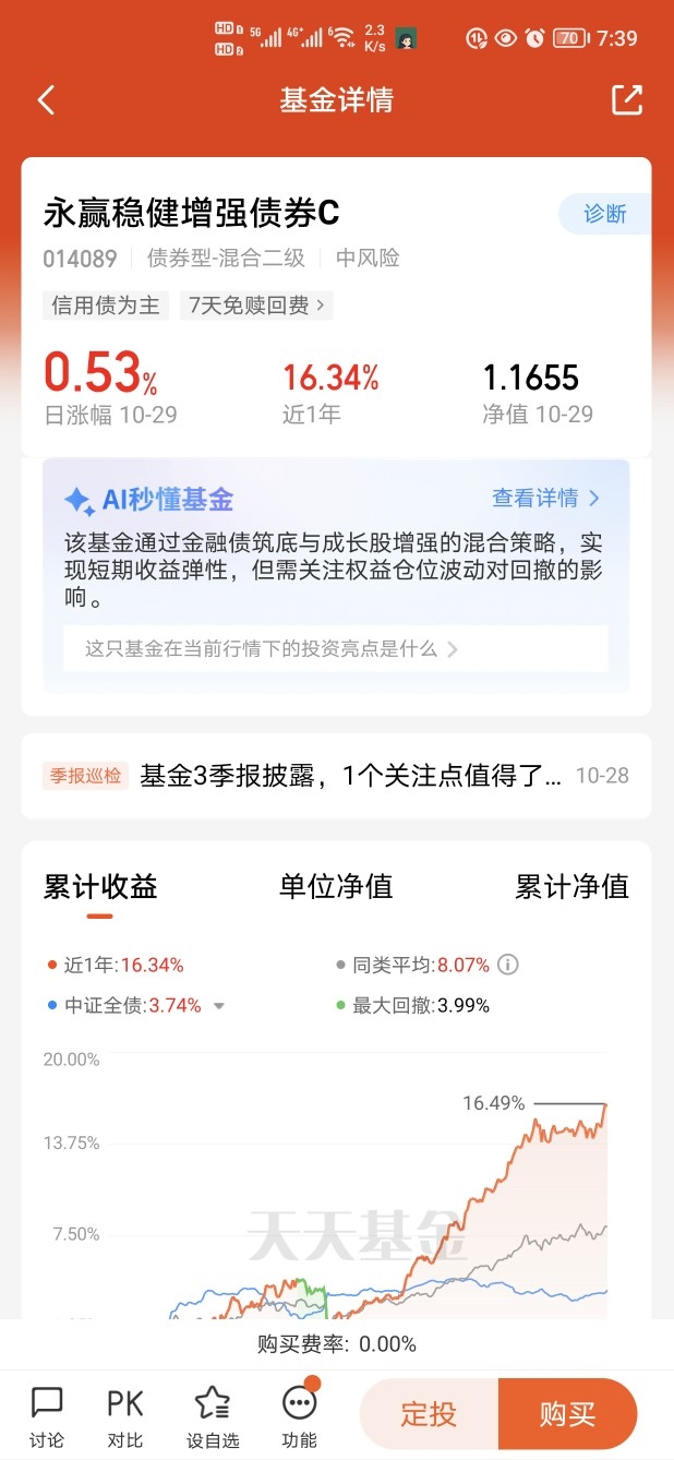 近期,震荡市况使得“固收+”策略的关注度再度提升。$永赢稳健增强债券C$刚好符合