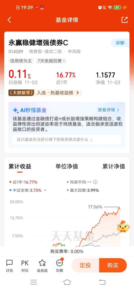 $永赢稳健增强债券C$不想大起大落的,固收加最适合布局,今晚更新收131个蛋,近