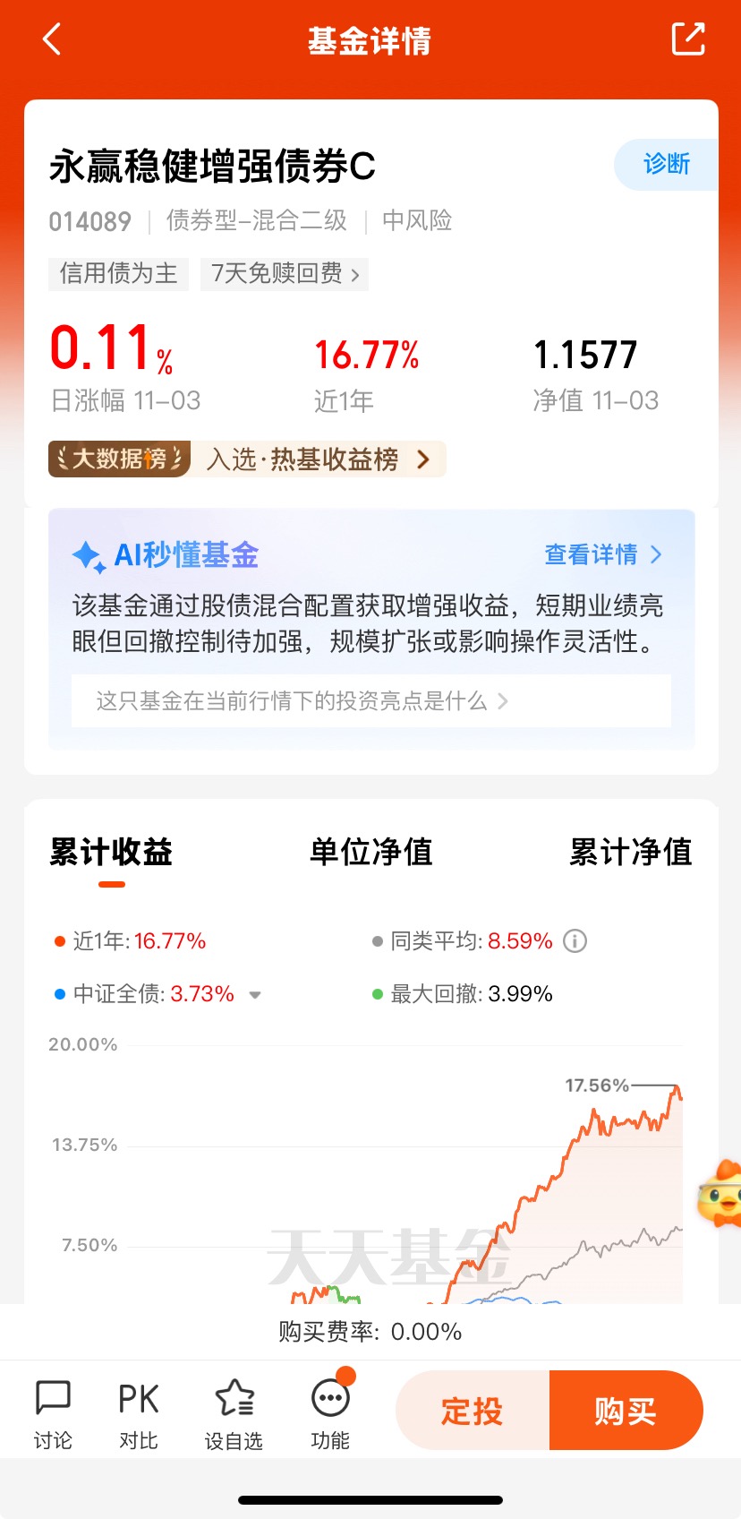 #11月基金投资策略# 2025年“固收+”产品(如二级债基、偏债混合型基金)因兼顾稳健与收益,规模延续增长态势,成为市场亮点。$永赢稳健增强债券C$ 昨天收11个蛋,近一周收101个蛋,近三个月收522个蛋,近六个月收1319个蛋,近一年收1677个蛋,各阶段的业绩优秀;长期来看,混债基金(如二级债基指数)过去10年累计涨幅显著高于沪深300指数,波动率更低,显示其“进可攻、退可守”的特性。