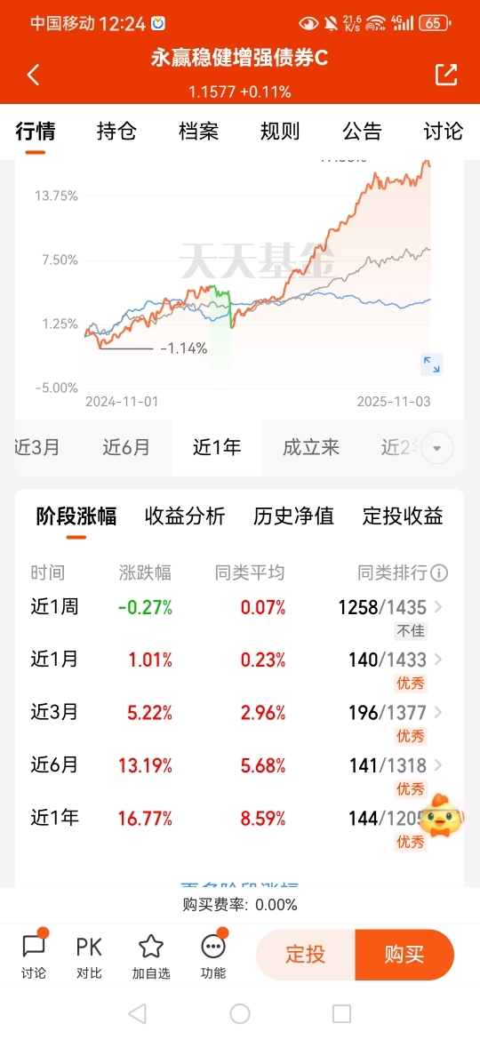 $永赢稳健增强债券C$ 收蛋能力不错,中长期更值得期待,只配置权益风险大,当下均衡配置更适宜;近三个月涨幅+5.22%,近六个月涨幅+13.19%,近一年涨幅+16.77%,较高仓位债券打底,再配置一定股票来增强收益,进退皆宜,也比较适合震荡市场布局#AI应用类股票大涨:短剧概念逆势走强#