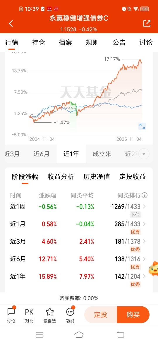$永赢稳健增强债券C$趁着市场调整也是时机,提前蹲一波,固收加,近一个月收58个