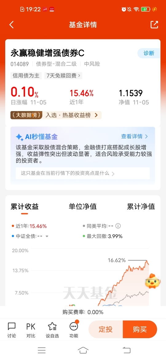 $永赢稳健增强债券C$固收加,趁调整后布局更有动力,今天收10个蛋,近一个月收6