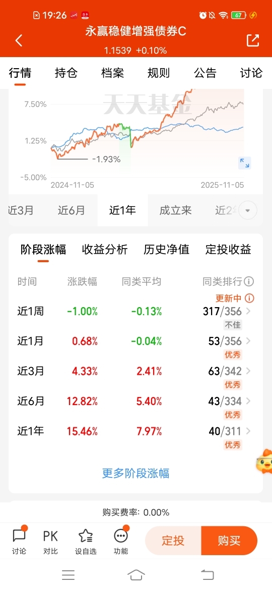 $永赢稳健增强债券C$挺适合稳健布局,攻守兼备,今晚更新收10个蛋,近一个月收6