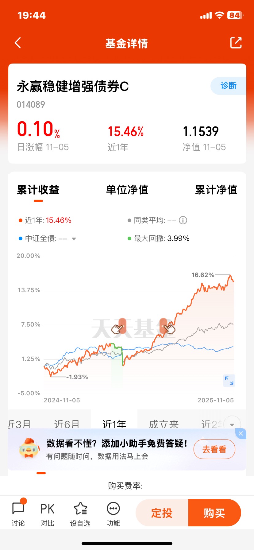 #“马”字辈股大涨!“玄学炒股”又来A股?# 债市受资金面、政策预期等因素影响呈震荡态势,权益市场活跃度提升,固收类产品通过股债搭配实现了较好的收益;$永赢稳健增强债券C$ 今天收10个蛋,近三个月收433个蛋,近六个月收1282个蛋,近一年收1546个蛋,各阶段的业绩优秀;固收类产品以债券、存款等固定收益资产为主,违约风险相对较低,适合风险偏好保守的投资者。