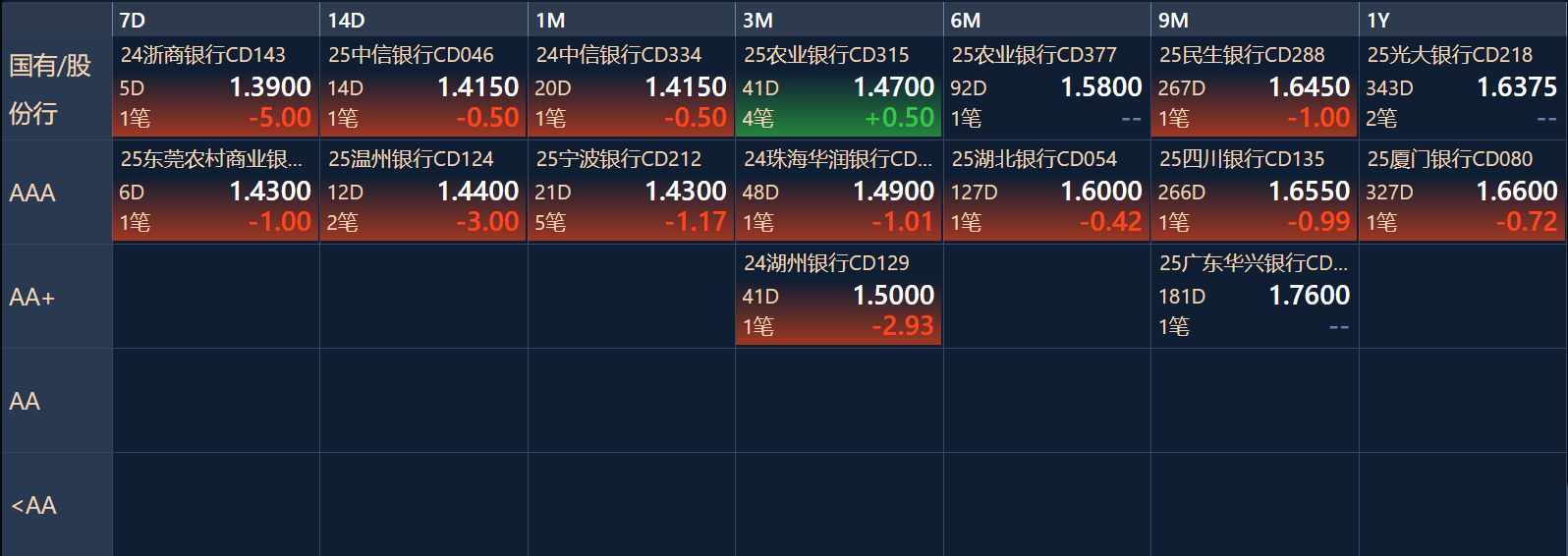 同业存单:晴天