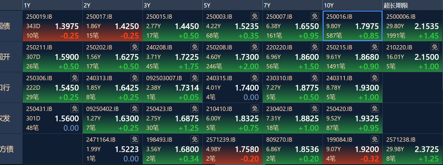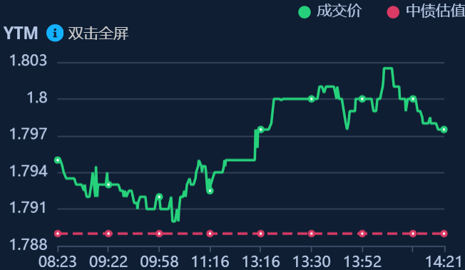 二、十年期国债收益率:1.7975 0.0085%(国债收益率越涨,债市越跌,两者反向关系)