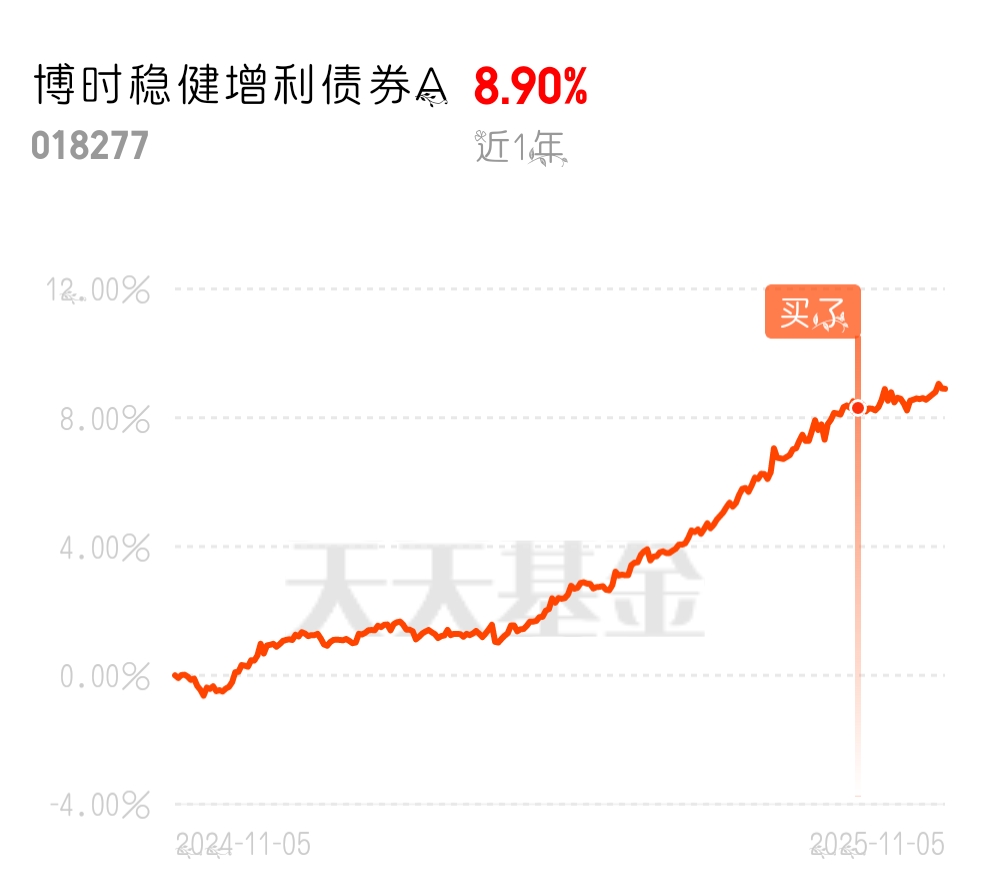 对比了一圈,$博时稳健增利债券A$ 近一年将近9%的收益确实亮眼,排名在同类型基金里非常靠前。这基的基金经理的债券配置眼光精准,80%以上的债券仓位里,中长久期利率债占比高,近期正好赶上两大重磅利好。一是央行10月重启国债买卖操作后,11月又净投放200亿元,虽然规模不大,但明确释放了宽松信号,相当于给债市收益率划定了“顶部”。机构预测30年期国债年内还有15BP下行空间,10年期国债可能跌到1.6%,这意味着长债价格会持续上涨,这基的持仓自然能坐享收益。二是Q4债市供给减少,银行、险资都在抢筹超长债,债基规模也趋于稳定,形成了“顺畅做多期”,这种市场环境下,持有的债券资产既能赚票息,又能赚价差。再加上它20%左右的权益仓位精准押注了“工程师红利”主线,重仓的中芯国际、中科曙光,都是政策大力扶持的科技成长股。现在大盘在3900点横盘,科技板块的结构性机会特别突出,基金经理通过“小仓位、高景气”的策略,既能用权益仓位增厚收益,又不会让组合承担太大风险。现在债市企稳,股市有机会,这波回调简直就是加仓的黄金机会。#科技小登大揭秘#