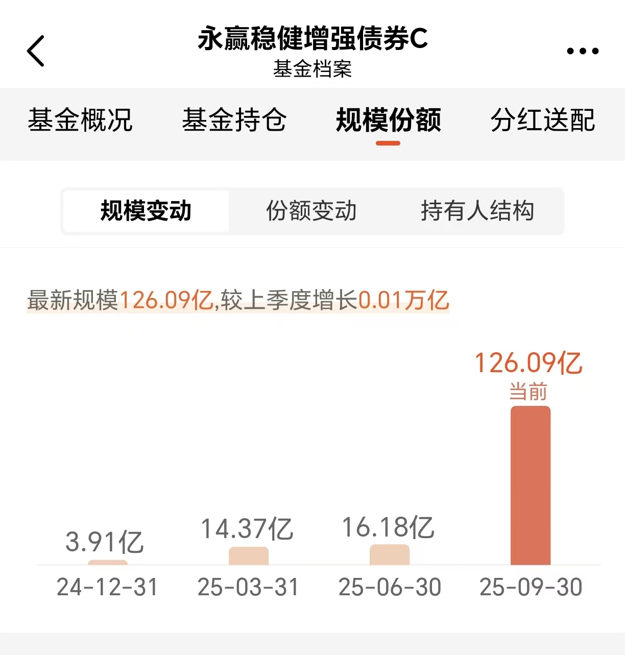固收+产品成为了投资市场的新宠。$永赢稳健增强债券C$ (014089)在这一趋势下表现抢眼,以绩优固收+的身份吸引了众多投资者的目光,随着资金的买入,最新规模已达126.09亿!