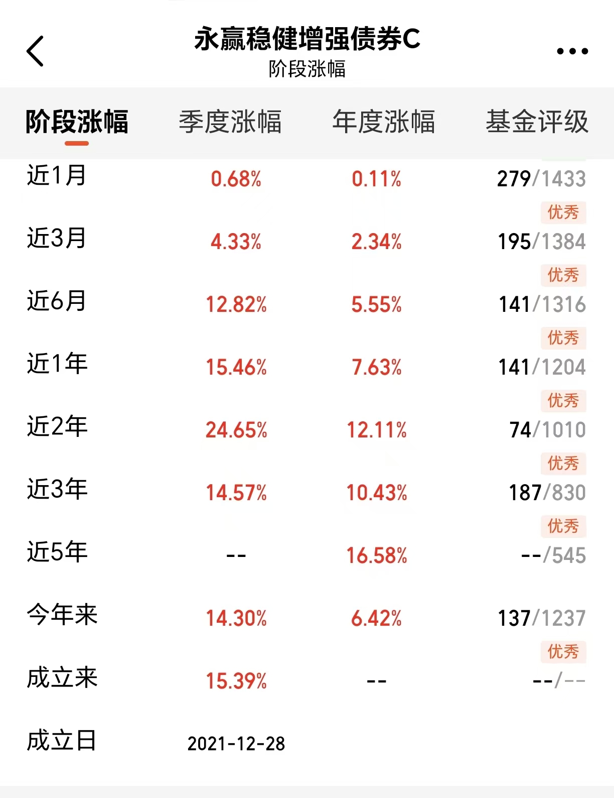 永赢稳健增强债券C(014089)的业绩数据充分说明了其策略的有效性。近1月收蛋68颗,近3月上涨4.33%,近6月上涨12.82%,近1年上涨15.46%,成立以来取得61.45%收益,这样的成绩在同类产品中表现突出。其成功的关键在于对市场趋势的准确判断和灵活的资产配置能力。在债券投资上,通过对利率走势的研判和久期的调整,把握债券市场的收益机会;在权益投资上,精选优质标的,控制风险敞口,实现了产品的稳健增值。