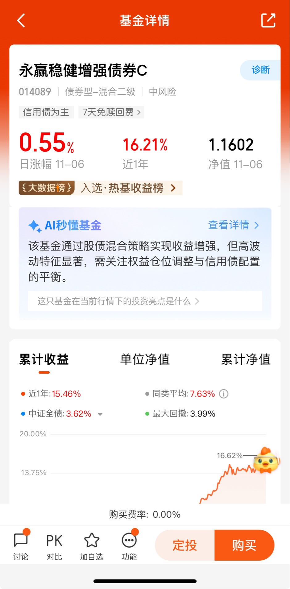 $永赢稳健增强债券C$ 今天不错哈收55个蛋,近3个月收433个蛋,近6个月收1282个蛋,近一年收1546个蛋,表现优秀!通过“债基打底+权益增强”的组合,在控制风险的同时追求适度收益。其底层债券持仓以高等级信用债为主,搭配利率债优化久期,为产品提供了稳健的基础收益!#4000点 到底要不要止盈?#