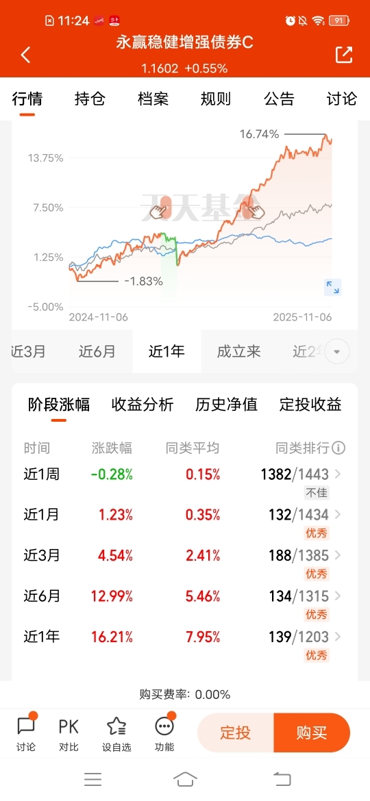 $永赢稳健增强债券C$ 固收俩不误,昨天收55个蛋,近一个月收123个蛋,近三个月收454个蛋,近半年收1299个蛋,近一年收1621个蛋,有点东西,永赢稳健增强在严控风险的基础上持续辅以权益资产增厚收益,排名处于前列,其采用债券稳健资产打底,再用权益资产增厚收益,相比其他混合债基其弹性更强。#金属板块还能买吗#