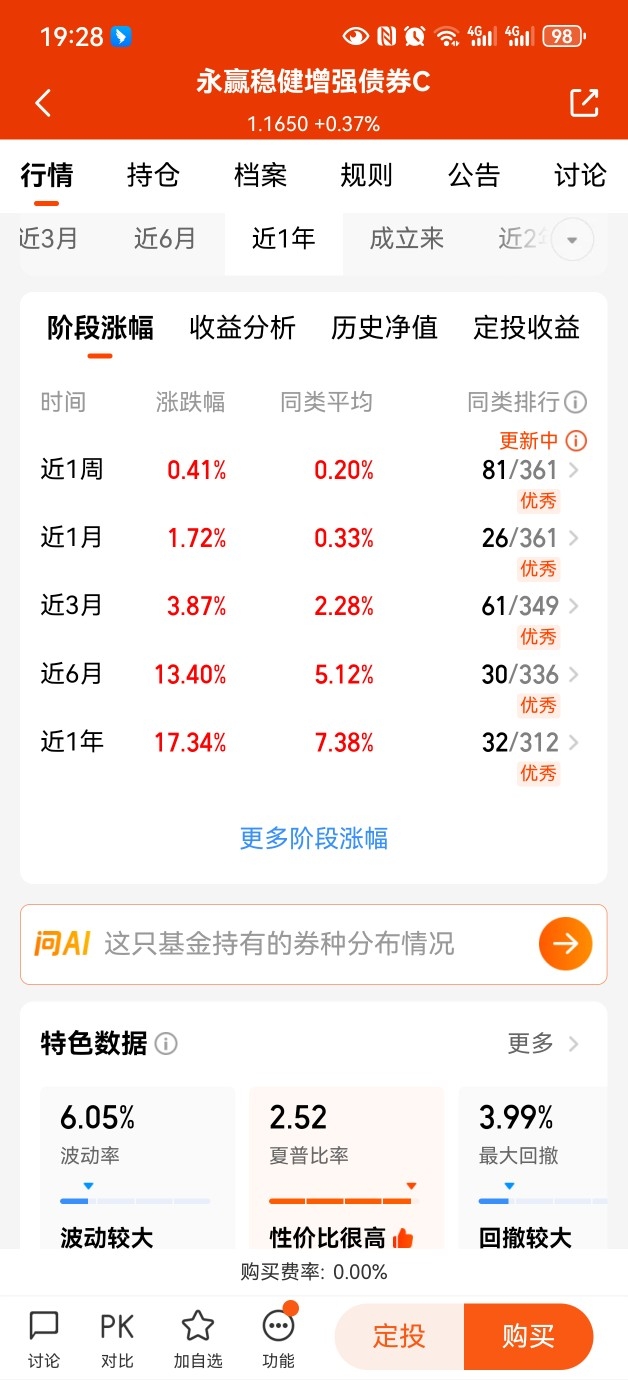 市场来回震荡,做好均衡配置还是有必要的。$永赢稳健增强债券C$今天喜收37个蛋,近半年高达1340个蛋,产品以“债基打底+权益增强”的组合策略,它既能提供债券的稳定收益,又能通过权益资产把握市场机会,作为“进可攻、退可守”的品种,均衡配置我看行。#沪指刷新10年新高!4100点指日可待?#