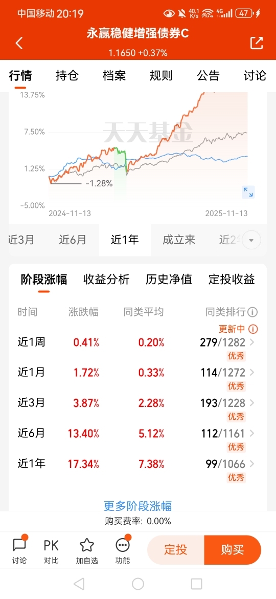 #黄金又牛起来了!这次你上车了吗?# 震荡市中,"固收+"成了稳健理财的优选。永赢稳健增强债券C太强了,今天收37颗蛋,近一个月收下172蛋,近三个月收下387颗蛋,近一年涨幅+17.34%;采用"债券筑底、权益添翼"的黄金策略:底层以高等级信用债为核心持仓,搭配利率债灵活调整久期,稳稳筑牢收益底盘