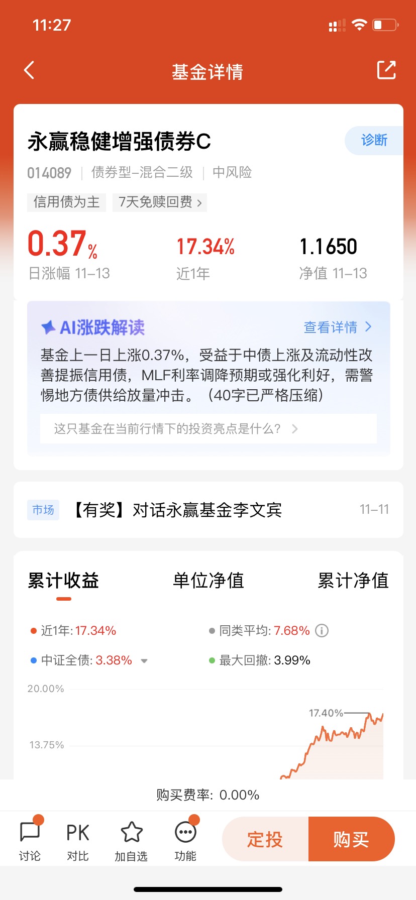 $永赢稳健增强债券C$ 昨天收了37个蛋,两天收了76个蛋回来,还真是个能收大蛋的呀!永赢稳健增强采用股债混合策略,近一个月172个蛋,近半年1340个蛋,近一年1734个蛋,各个阶段的业绩表现在同类中都很优秀,是一个抗波动又能涨的固收加基,这里还是持满7天免赎回费的,有点实力了!#多重利好催化!新能源走强#