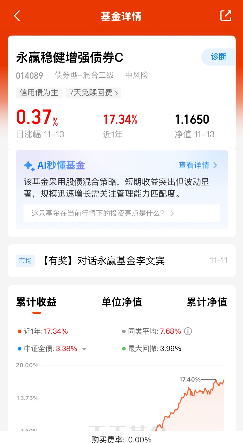 昨天收37个大蛋,近一月收172个蛋,近三个月收387个蛋,近六个月收1340个蛋,近一年收1734个蛋,各阶段的业绩优秀;固收类产品通过“债券打底+权益增强”的策略,在控制风险的同时追求更高收益,成为投资者资产配置的重要选择。