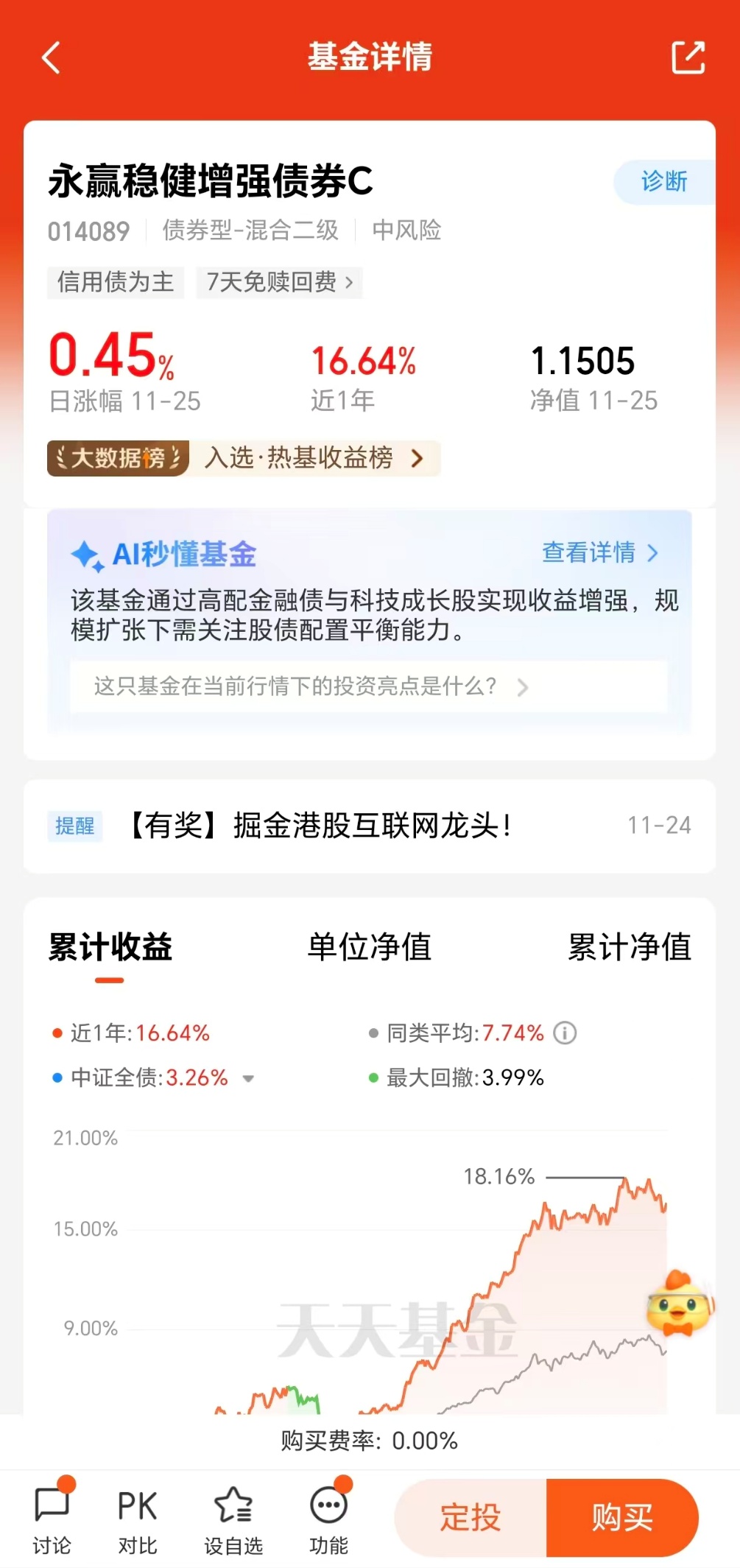 这款产品的出圈绝非偶然,其债基打底+权益增强的策略堪称黄金组合,既能在市场上涨时分享收益,又能在下跌时控制回撤。实打实的业绩最有说服力,近6月上涨11.94,近1年上涨16.64%,成立以来取得15.05%收益,这样的成绩在震荡市中尤为难得。