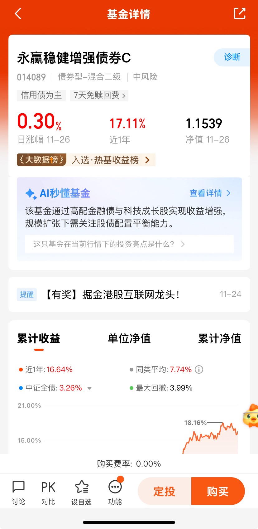 混债基金的资产配置较为分散,既投资于债券市场,又投资于股票市场或可转债市场。在不同市场环境和经济周期下,债券和股票的表现往往具有一定的互补性,通过分散投资可以降低单一资产的风险,提高投资组合的稳定性。永赢稳健增强C今天收30个大蛋,近三个月收134个蛋,近六个月收1229个蛋,近一年收1711个蛋,各阶段的业绩优秀;通过债券打底控制风险,叠加股票或可转债增强收益,适合风险偏好较低但追求稳健增值的投资者。#沪指跌破3900点关口! 如何应对?#