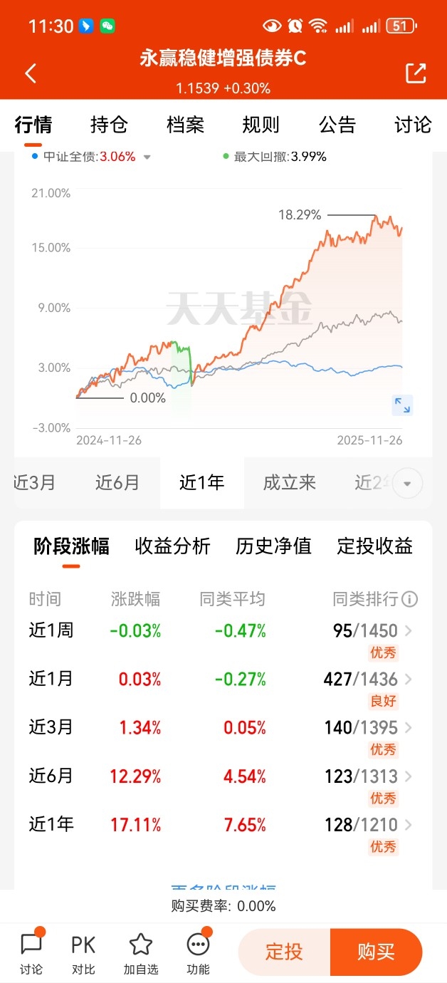 $永赢稳健增强债券C$最近真够给力,已经连续三天上涨,三天收79个大蛋,近六个月