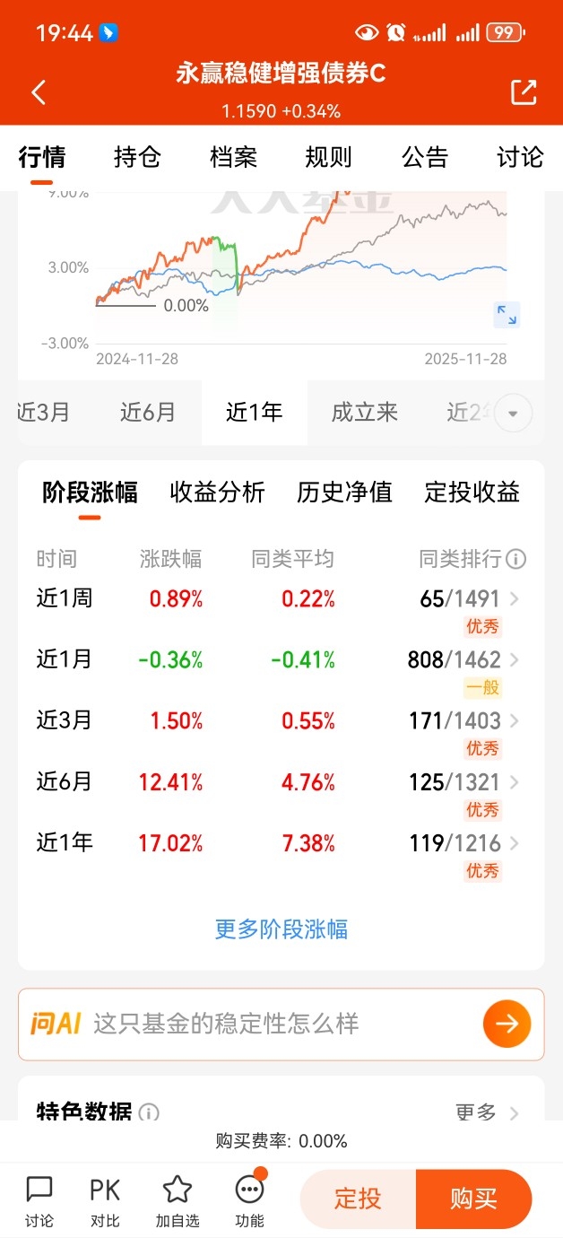$永赢稳健增强债券C$ 最近反弹还挺猛的呢,今天收34个蛋,近六个月收1241个蛋,近一年更是高达1702个蛋,近六个交易日已经有五个交易日上涨了。产品以高等级信用债为核心持仓,搭配利率债优化久期,构建稳健收益基础。权益部分精选低估值、高股息标的,并通过可转债增强组合弹性,实现攻守兼备。#12月基金投资策略#