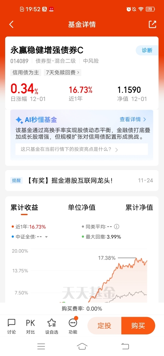 $永赢稳健增强债券C$固收加俩不误,能涨抗跌的,今晚更新收34个蛋,近一个月收2