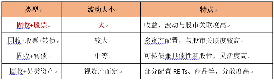 按照固收加“+”部分的标的选择,常见的固收加可分成四种类型。