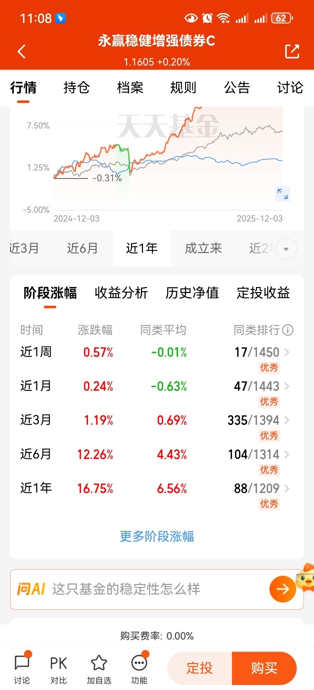 $永赢稳健增强债券C$昨天万绿中一点红,居然收了20个大蛋。产品“债基打底+权益