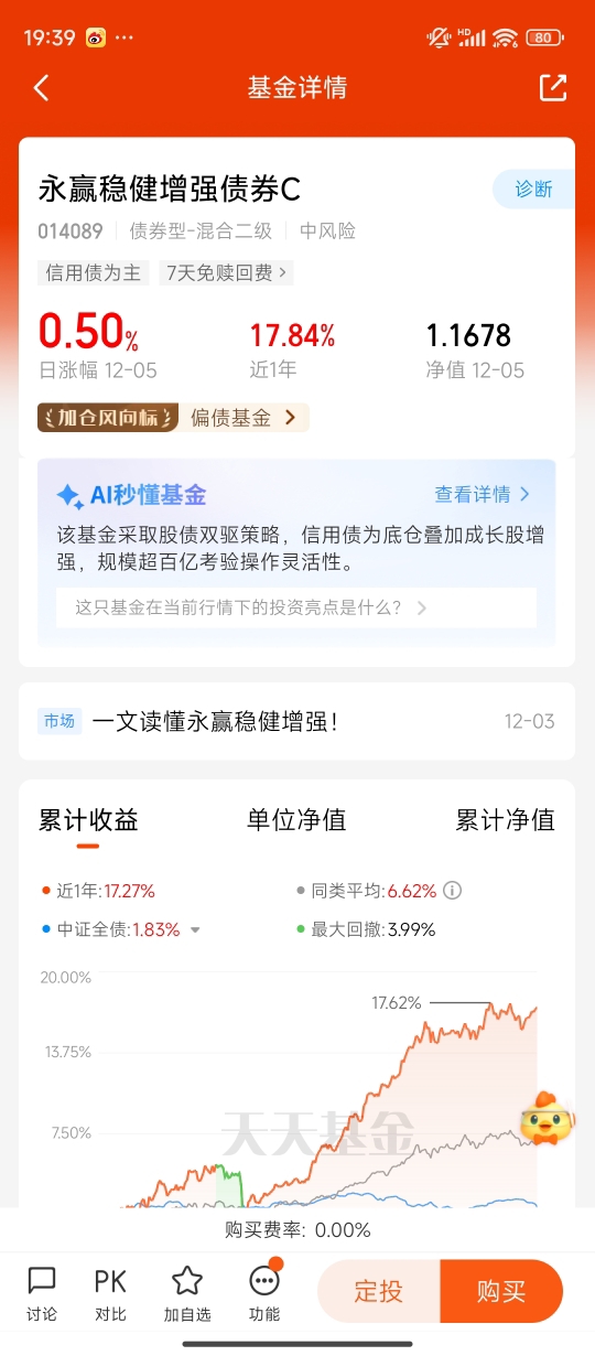 红周五来了。固收债基各个表现出色。$永赢稳健增强债券C$今晚收50颗蛋。近一周收