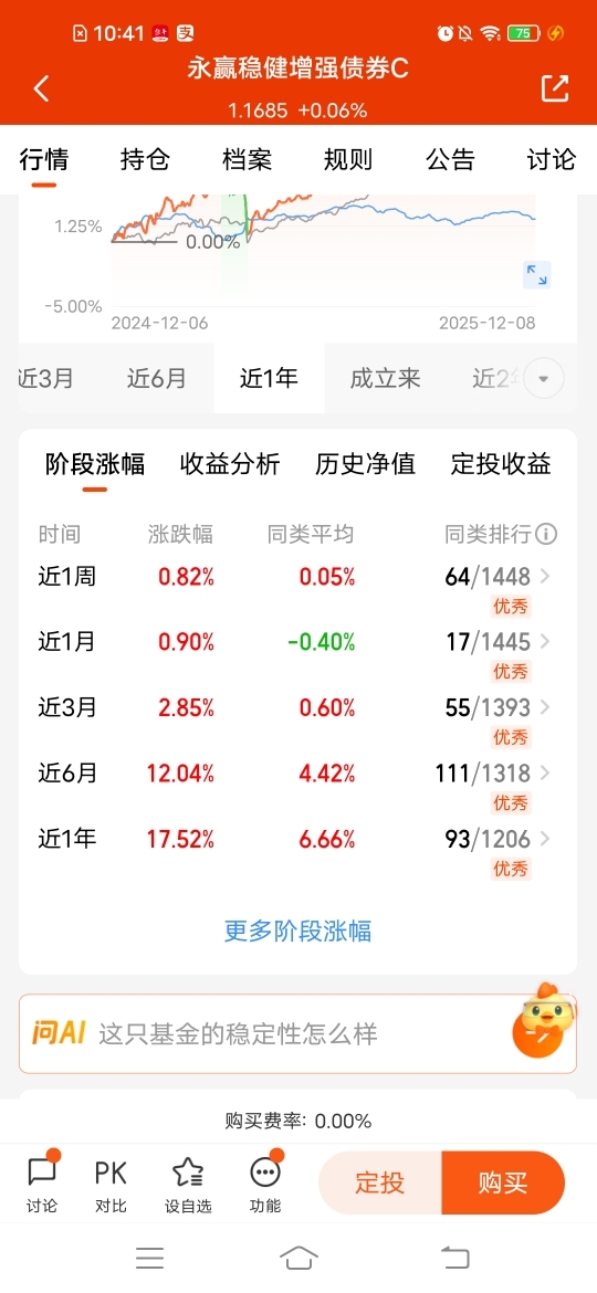 $永赢稳健增强债券C$ 固收俩不误,近一周收82个蛋,近三个月收285个蛋,近半年收1204个蛋,近一年收1752个蛋,收蛋能力不错,中长期更有优势,只配置权益风险大,近期行情震荡,增加固收+配置,债券打底,让你的收益稳一点,较高仓位债券打底,再配置一定股票来增强收益,进退皆宜。#铜价刷新历史高点!#