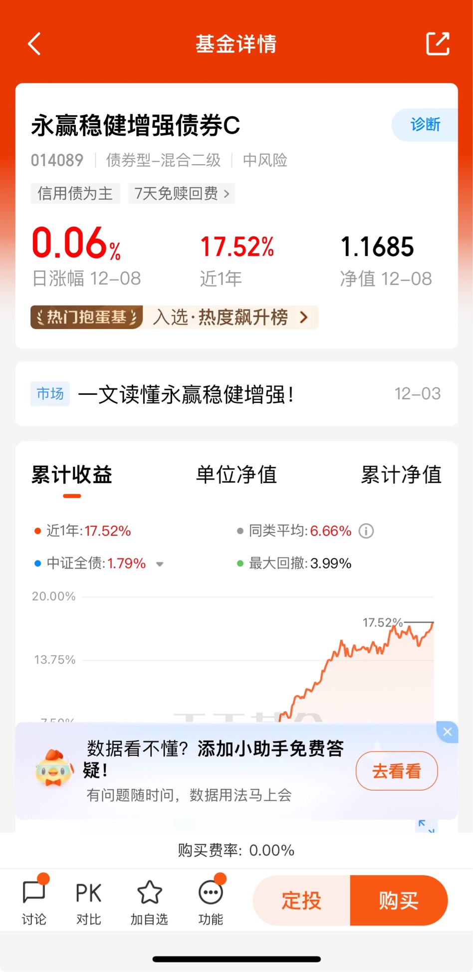 $永赢稳健增强债券C$昨天收6个蛋,近一周收82个蛋,近3个月收285个蛋,近6