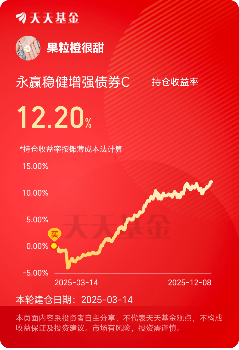 $永赢稳健增强债券C$这波连涨太香了,今天加点,接下来也继续冲哈