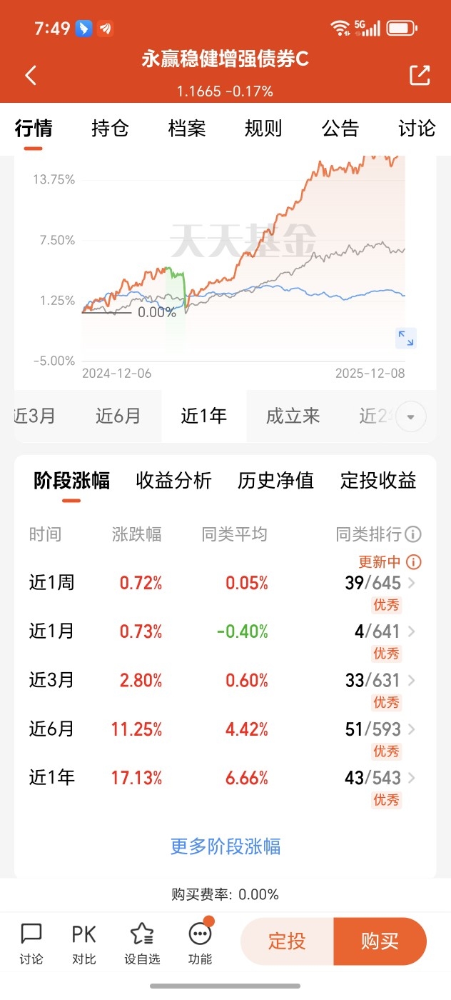 $永赢稳健增强债券C$ 是以信用债加利率债打底,以权益增强的固收+基金,近一周收82个蛋,近六个月收1125个蛋,近一年收蛋1713个,收蛋能力很强,回撤控制做的也不错。不喜欢大起大落的可以跟上,相信后市会更好。#低估补涨号启航#